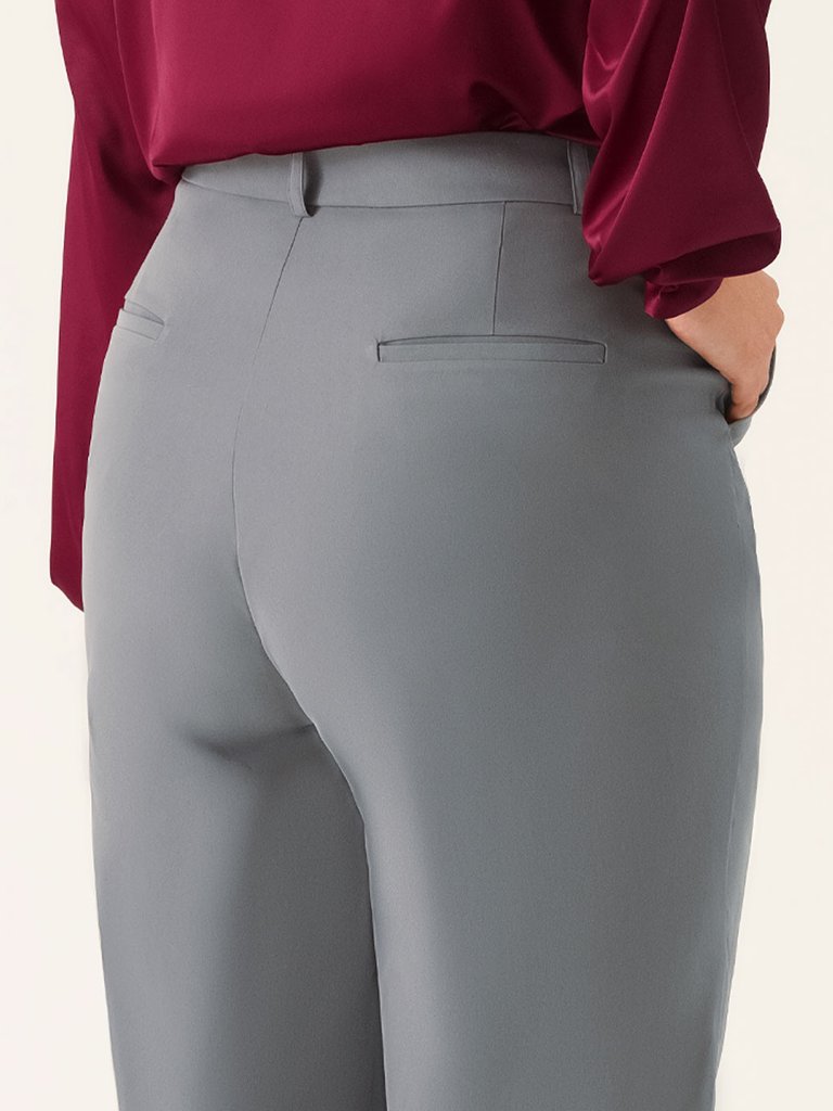 A calça Beverly se destaca pelo caimento elegante e pela modelagem que equilibra estrutura e movimento. Em tom cinza, reforça sua proposta contemporânea e versátil, ideal para composições sofisticadas que transitam com facilidade entre ambientes profissionais e produções mais alinhadas. Confeccionada em tecido com elasticidade, a peça proporciona maior conforto e liberdade de movimento, adaptando-se ao corpo com leve flexibilidade. A peça conta com fechamento interno em gancho de metal, acompanhado de braguilha tradicional, garantindo ajuste seguro e acabamento discreto no cós. Possui bolso faca funcional na parte frontal, que agrega praticidade ao uso diário, além de bolsos traseiros embutidos, que mantêm a estética limpa e refinada. As pences nas costas contribuem para melhor adaptação ao corpo, proporcionando caimento preciso e valorizando a silhueta com elegância. Com acabamento polido e construção cuidadosa, a calça Beverly entrega presença, funcionalidade e sofisticação em cada detalhe.