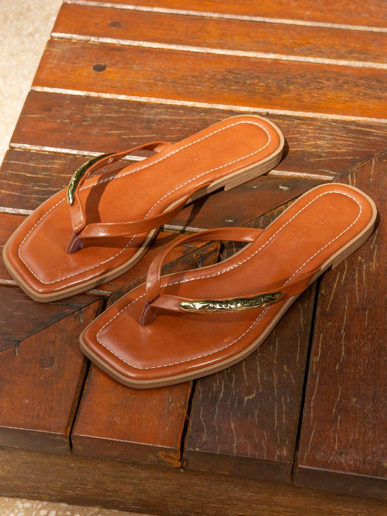A sandália rasteira Aline é a união perfeita de praticidade e estilo. Confeccionada em material sintético, possui tiras finas que conferem leveza e um toque delicado ao design. O detalhe em pedrarias na parte superior adiciona brilho e sofisticação, transformando a rasteira em uma peça versátil que transita do casual ao elegante. A palmilha levemente acolchoada proporciona maior conforto ao caminhar, enquanto o solado emborrachado garante estabilidade e segurança. Em tom camel intenso possui detalhes dourados, fácil de combinar com diferentes produções, desde looks leves de verão até composições mais sofisticadas. Ideal para acompanhar vestidos, saias, shorts e calças fluidas, é a escolha perfeita para quem busca elegância sem abrir mão do conforto.